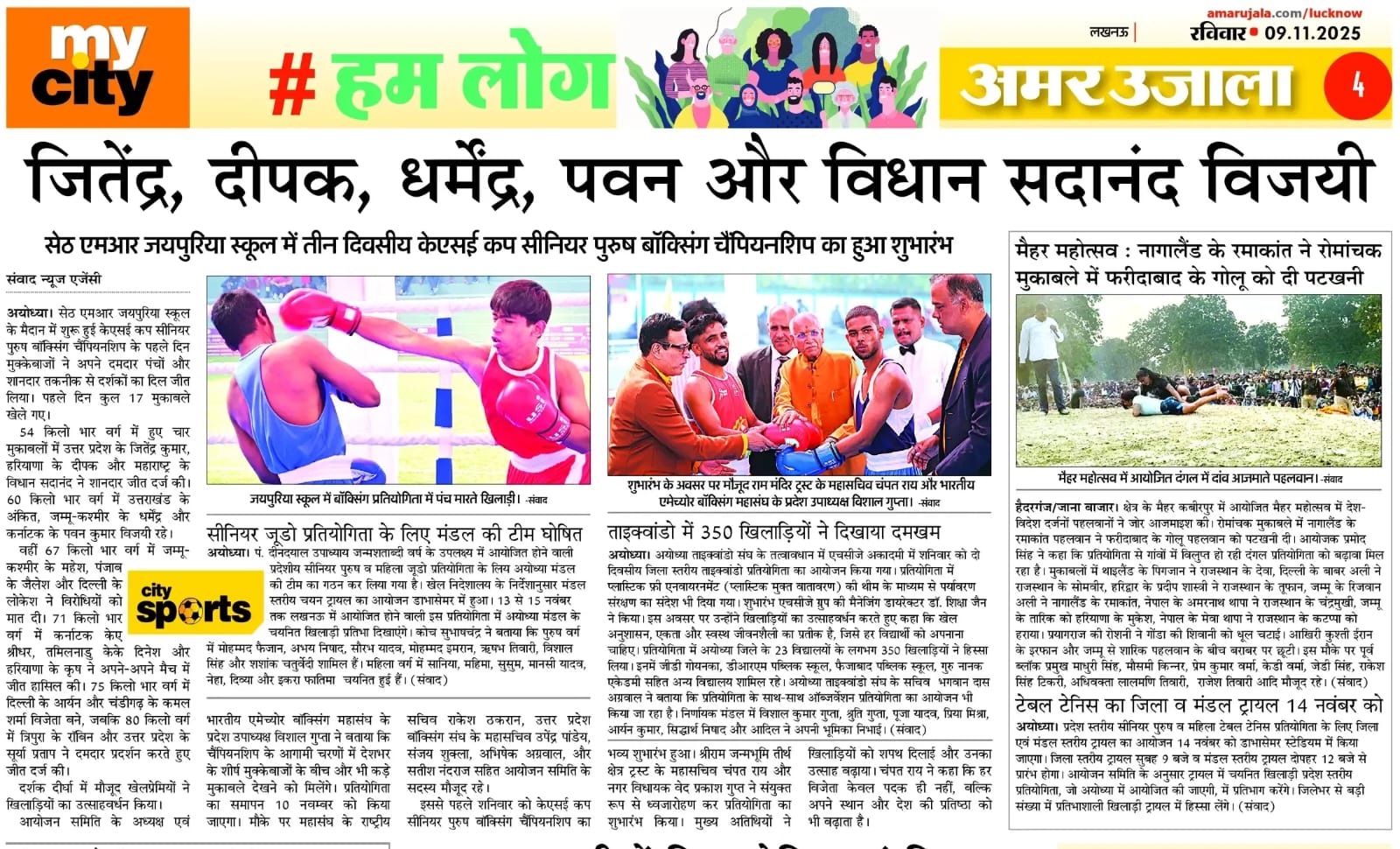 पूरे दिन दर्शक दीर्घा में मौजूद खेल प्रेमियों ने मुक्केबाजों का जोश बढ़ाया। हर पंच पर तालियों की गड़गड़ाहट गूंजती रही। खिलाड़ी जहां जीत की खुशी से उत्साहित दिखे, वहीं हारने वाले भी खेल भावना के साथ अगली बार बेहतर प्रदर्शन का संकल्प लेते नजर आए। भारतीय एमेच्योर बॉक्सिंग महासंघ के प्रदेश उपाध्यक्ष एवं आयोजन समिति के अध्यक्ष विशाल गुप्ता, ने बताया कि चैम्पियनशिप के आगामी चरणों में देशभर के प्रतिभाशाली मुक्केबाजों के बीच और भी रोमांचक मुकाबले देखने को मिलेंगे। प्रतियोगिता का उद्देश्य युवाओं में खेल के प्रति रुचि बढ़ाना और अयोध्या को राष्ट्रीय स्तर पर एक स्पोर्ट्स हब के रूप में विकसित करना है। 10 नवम्बर को प्रतियोगिता का समापन किया जाएगा। मौके पर महासंघ के राष्ट्रीय सचिव राकेश ठकरान, उत्तर प्रदेश बॉक्सिंग संघ के महासचिव उपेन्द्र पाण्डेय, संजय शुक्ला, अभिषेक अग्रवाल, सतीश नंदराज सहित आयोजक समिति के अन्य सदस्य उपस्िथत रहे।